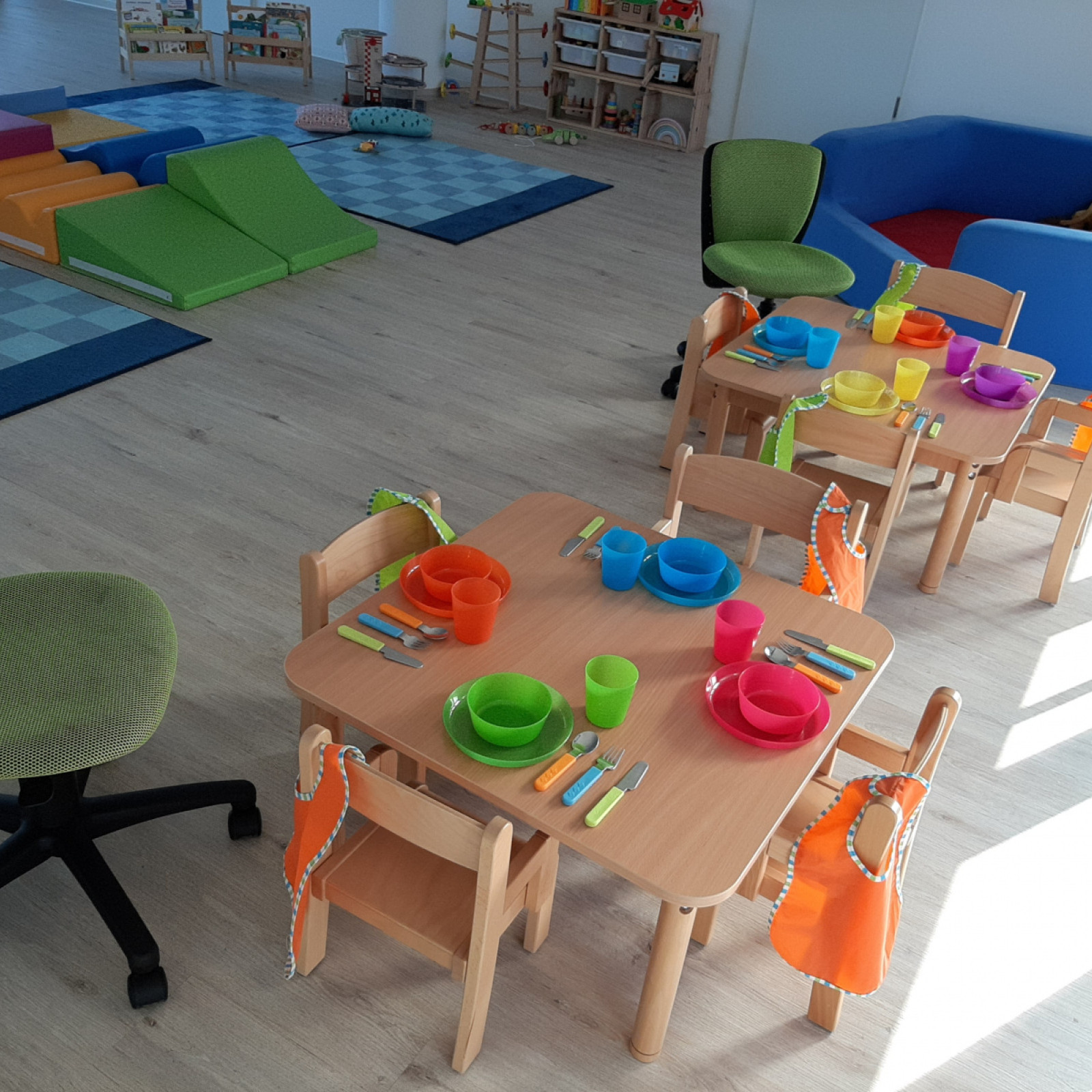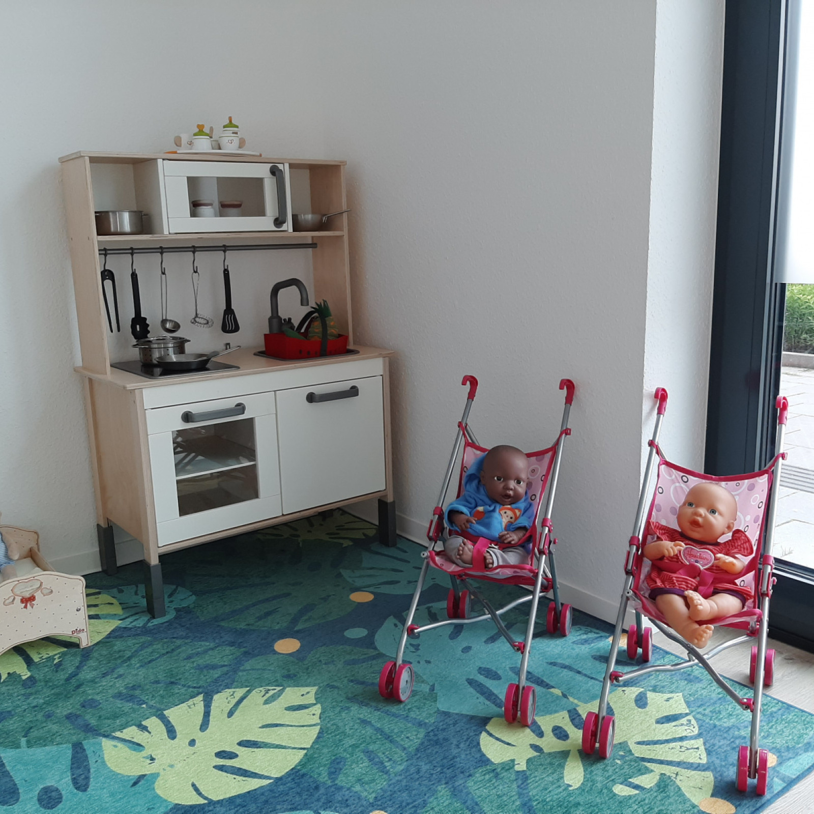 Die Räume sind an die Bedürfnisse der Kinder angepasst. Der Waschbereich mit eigener Wickelstation bietet Waschbecken und abgetrennte Toiletten. Im Schlafbereich können sich die Kinder ausruhen und Kraft für neue Abenteuer tanken. In der geräumigen Küche kümmern wir uns um die ausgewogene Versorgung der Gruppe. Dabei binden wir die Kinder mit ein und machen das Mittagessen so zum gemeinsamen Erlebnis. Durch verschiedene eigene Bereiche schaffen wir zudem kleine Inseln zum Basteln, Spielen und Toben. Es versteht sich von selbst, dass in den Räumen nicht geraucht wird.